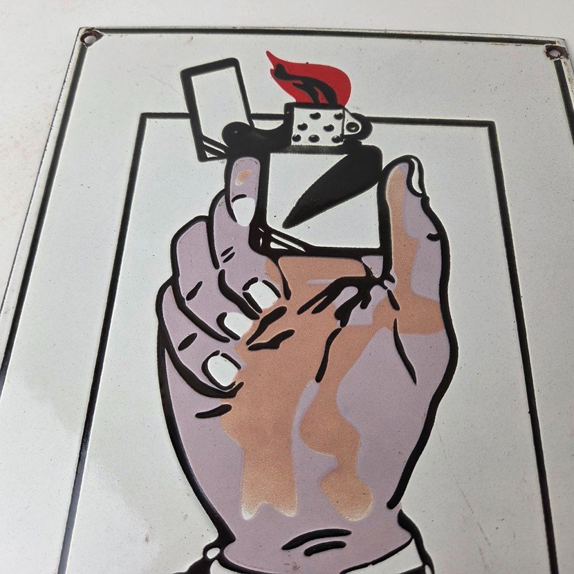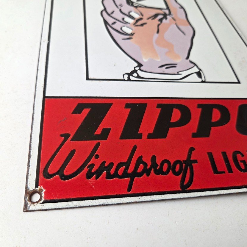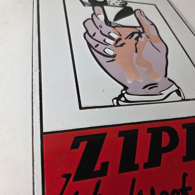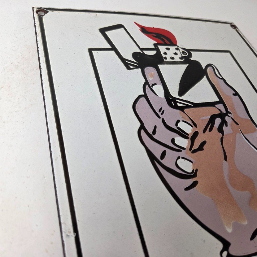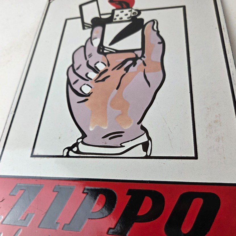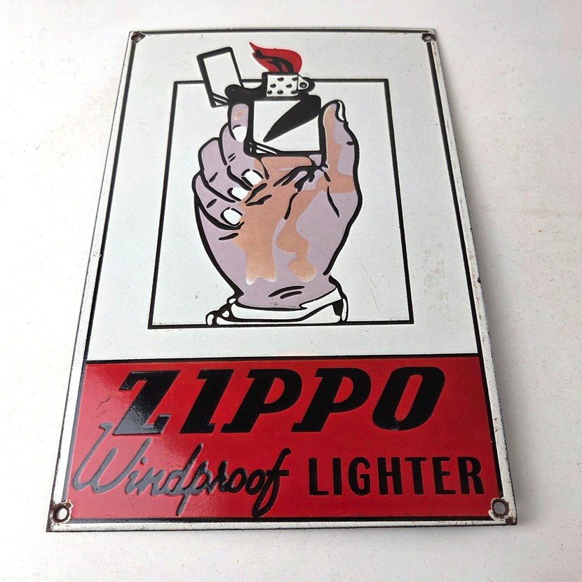 This vintage Zippo Lighter Porcelain sign features the iconic Zippo brand and is perfect for collectors of gas and oil advertising memorabilia. The sign measures 12″ x 8″ and features a vibrant colors scheme with bold lettering.